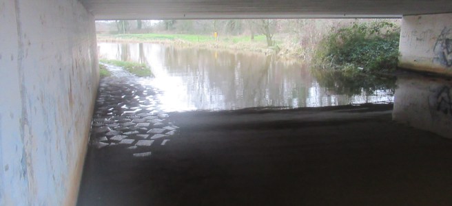 Bij de Engelkensbrug in Wessinghuizen pak ik de route weer op. Het pad slingert verder door het dal van de Ruiten Aa. Volgens mijn gastheer en gastvrouw is de route van Wedde naar Bourtange zeer fraai. Tussen wind en regen door zie ik inderdaad fraais in het landschap. De regen zal het gebied goed doen. Na Ter Wupping steek ik het Mussel-A-kanaal over en dan slinger ik verder dal het Ruiten Aa-dal. Vlak voor het oude en goed bewaarde dorp Smeerling word ik geacht de Onstweddeweg te kruisen. Iemand heeft bedacht dat het leuk is om dat onder de brug door te doen, pal naast de Ruiten Aa. Ik kijk het even aan. De eerste helft van het smalle voetpad naast de Aa ligt onder water, de tweede helft heeft het hoofd boven water kunnen houden. Dit laatste hoop ik ook, wanneer ik net voorzichtige stappen het laagje water in ga. Ik haal de overzijde, vandaar ga ik de brug over en loop Smeerling binnen. Gastvrij Smeerling, maar de deuren zijn gesloten, zelfs het centrum van Natuurmonumenten is dicht.