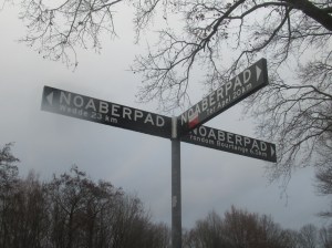 Dat andere water vind ik in het Ruiten Aakanaal (geen Schoppen Aa, of Harten Aa). Dit kanaal volg ik in noordelijke richting tot ik uitkom bij de Bourtangersluis. Deze sluis steek ik over en dan kom ik bij het Bourtangerkanaal, die wel iets met het oude vestingstadje Bourtange te maken zal hebben. Dit kanaal volg ik eerst aan de noordelijke zijde, dan kom ik via een mooie hoge voetgangers- en fietsersbrug aan de zuidzijde van hetzelfde kanaal. Een wegwijzer van het Noaberpad wijst drie kanten uit. Heen en terug en een route om de vesting te vermijden (blijkbaar zijn er mensen die dit willen en faciliteert Bourtange dit verlangen). Ik passeer de jachthaven van Bourtange waar zich drie gemotoriserde vaartuigen bevinden. Er is nog ruimte over. Anders is het weer wachten tot november voor de intocht van Sinterklaas. Bij de bushalte Bakovensweg ontdek ik dat ik de bus naar Winschoten net heb gemis. De volgende bus gaat over een klein uur. Ik overweeg om de route van het Noaberpad door en bijna rondom Vesting Bourtange nog mee te pakken, maar besluit toch maar om in het tegenoverliggende bushokje te gaan zitten. Wanneer ik net zit schijnt de zon. Het kan dus wel!!
