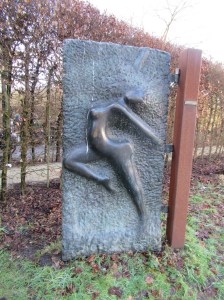 Bij het ingaan van de berceau is een altijd open poort gecreërd door twee panelen van Jits bij elkaar te plaatsen. Dit paneel nodigt de wandelaar uit om huppelend verder te gaan. Wanneer ik verder ga ontmoet ik steeds meer wandelaars. Nu krijg ik de indruk dat het luchwandelaars zijn. Vlakbij is het Science Park van Bilthoven, waar vele mensen onderzoek doen in laboratoria, bijvoorbeeld bij het RIVM. De route komt dicht bij de bebouwde kom, maar slaat af naar een onbebouwd gebied. Dwars door de bossen en langs ruiterpaden. Twee keer ontmoet ik een koppel wandelaars dat ik al eerder had gezien op mijn wandeling. Bos en ruimte, bomen oud en jong. Dan kom ik in Noord Houdringe, particulier bezit, maar ik mag er lopen en zo te zien mogen anderen het ook. Aan het einde van het bos kom ik op een laan die naar het bos is genoemd: Boslaan. Op het laatste stuk door de bebouwde kom slaag ik er in om fout te lopen en dan kan ik op mijn schreden terugkeren. Tussen cortenstalen platen kom ik terug waar ik was.