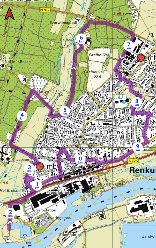 Het begin van mijn wandeling heeft niet direct een band met het schilderachtige Renkum. Het is weliswaar in Renkum, maar nog niet zo schilderachtig, afgezien van een oude en opgeknapte boerderij in de bebouwde kom. Wandelen met een oude route brengt wel aardige dingen met zich mee, want ook Renkum staat niet stil en er verandert wel eens een bedrif van A naar B. Voor mij is het even extra opletten.
