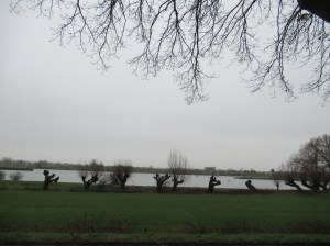 Aan de overzijde van het water ligt de veerboot, aan de Drielse kant.