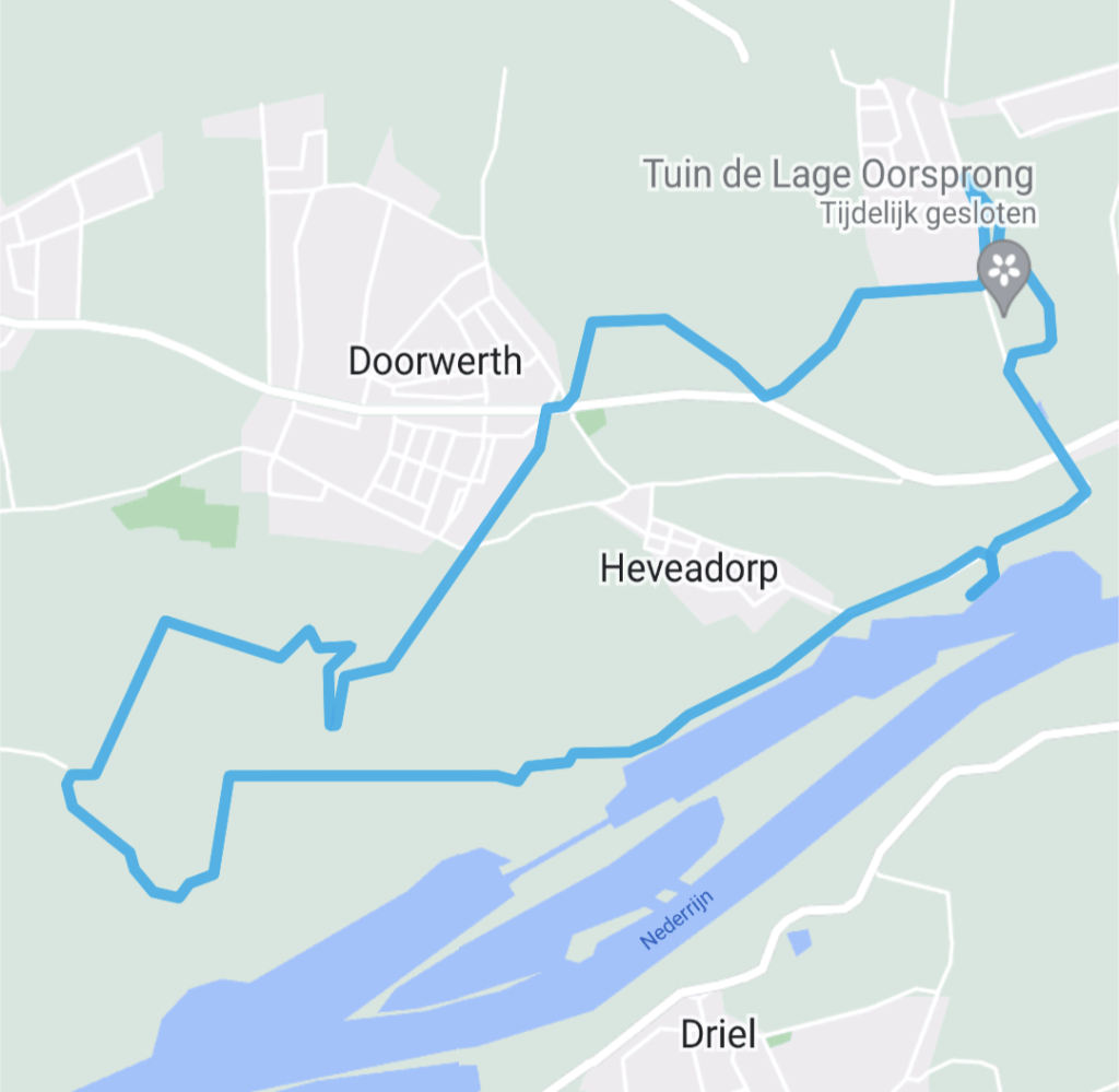 Ik ga op pad voor een volgend schilderspad. Wandelen in de gemeente Renkum in het spoor van oude schilders. Hier, bij het Drielse Veer werd geschilderd door Willem Maris (1844-1910). Op zijn schilderij Overzetveer zie ik een gehesen zeil en een paar koeien en vier knotwilgen.Al op de jonge leeftijd van 18 jaar kwam hij naar Oosterbeek om te schilderen, temidden van oudere collegae zoals Anton Mauve. Op mijn foto staan knotwilgen en de rivier, maar geen koeien of stieren. Die andere Willem oefende bij de Stier van Paulus Potter in een museum in Haarlem en op zijn werk zal een koe of stier niet gauw ontbreken. Ik verlaat het uitgestrekte parkeerterrein bij het veer en zoek de Veerweg op. Hoog boven mij hoor ik stemmen van de Westerbouwing en zie ik met mijn hoofd in mijn nek steigers tegen het gebouw. De Benedendorpseweg weg kruis ik, terwijl een klein OV-busje langszij komt. Ik ga de weg naar het noorden op en sla ter hoogte van een vijver rechtsaf, de Hemelse Berg in, en volg de natte sporen van een beek. Een feitspad op, voor een bruggetje linksaf en dan kom ik bij een prieel. Tegenwoordig zou je dit een hangplek noemen, overdag voor ouderen, in de donkere uren voor de jeugd. Op dit moment hangt er niemand. De route gaat even terug over de Van Borsselenweg en dan volg ik het fietspad dat langs een imposant complex komt, waar ik paardenboxen ontwaar in een sjiek onderkomen. Bij dit complex is ook de beroemde ruiter Edward Gal betrokken. Ik volg het fietspad tot vlak voor de Molenallee en sla daar rechtaf een breed pad in dat bij de Italiaanse weg uitkomt. Hier ga ik linksaf af over de klikerweg. De Italiaanse weg werd ooit aangelegd door de heer van het kasteel Doorwerth, om met zijn koets van station Wolfheze naar zijn kasteel te kunnen rijden. Tegenover mij zie ik een kerkgebouw van Roomskatholieke huize. Het is de voormalige Onze Lieve Vrouwe van Lourdes kerk. Nu is er een bed & breakfast in gehuisvest, met behoud van een Mariakapel. Ik zoek momenteel geen onderdak dus wandel ik verder totdat ik weer op de Italiaanseweg kom, links en rechts ruim bemeten percelen met bijpassende woningen. De klinkers liggen onder mijn zolen. De rijkdom van Doorwerth toont zich hier.