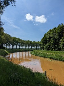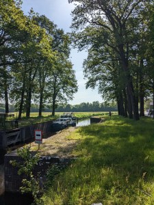 Een flink deel van mijn wandeling gaat langs De Runde, een water dat zich door het uitgestrekte landschap slingert. Het pad brengt mij in Emmer-Compascuum, waar ik van de route afwijken om de plaatselijke Boni te bezoeken. Ver van huis en toch een beetje thuis. Aan de rand van sportvelden neem ik mijn eerste pauze van de dag. Verder naar het zuiden. Langs Foxel kom ik bij Klazienaveen waar ik langs de Willemsvaart een korte drinkpauze neem. Verderop zitten oude mannen langs het Scholtenskanaal, turend naar een dobber. De naam Scholten is hier belangrijk. Hij was een Grunniger industrieel. Zijn vrouw heette Klaziena. Hij zat in de aardappels en het strokarton. Ik ga de bossen van de Scholtenzathe in. Zelfs hier is er weinig schaduw. Wel zijn er mogelijkheden om af te takken naar Emmen. Door bossen en langs heidevelden zoek ik bankje voor mijn broodnodige rust. Die bankjes zie ik pas bij het Willem-Alexanderkanaal, maar dan heb ik ergens onderweg al languit op de grond gelegen. Bij de sluis steek ik over. Linksaf langs een gesloten theehuis en dan een trekpontje. Een man met fiets helpt het pontje vooruit. Zijn vrouw kijkt toe op gepaste afstand. “Niet omvallen!” roept de man mij toe. Ik ga door een wat verlopen kassengebied. Westland II. Langs een visvijver, onder een snelweg door, langs een ongezien golfterrein en dan ben ik in Zwartemeer.