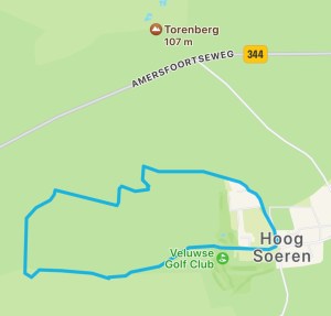 Op de besneeuwde grond onder onze voeten zien wij sporen van honden en een ander beest. We naderen de bebouwing van Hoog Soeren, dat geheel in stijl, uitblinkt in ruim bemeten percelen. ‘De Roode Pan‘ is een prachtig monument dat momenteel wordt gerestaureerd en verduurzaamd. In de bossen ligt nog steeds munitie die de Duitsers hebben achtergelaten na de oorlog. Gelukkig kunnen wij ongeschonden onze weg vervolgen.