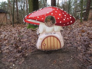 Uiteindelijk gaan we vanochtend samen op pad. Naar Hoenderloo. De wandeling begint op een parkeerterrein van een vakantiepark. De enige slagboom waar wij mee te maken hebben is de slagboom dwars over een bospad, waar wij ons vervoegen voor de start van onze wandeling. Nu wil het geval dat hier ook de start is van een Kabouterpad. Een zichzelf respecterend bos kan tegenwoordig niet meer zonder kabouters. We kijken naar een kabouterhuis, waarvan de deur op slot zit. Met al die mensen langs mijn voordeur zou ik ook voorzichtig zijn. We kunnen nog enige tijd genieten van kabouters die werkeloos tegen boomstammen leunen. Het is dan ook niet vreemd dat op een bordje met kabouterinfo staat dat kabouters wel 400 jaar kunnen worden. Helaas komen deze cijfers niet terug in de cijfers van het CBS over de vergrijzing in ons land. Ook vandaag wordt mij niet duidelijk waarom kabouters niet meegenomen in de cijfers van onze overheid. Zelfs bij de gesprekken over een nieuwe coalitie staat het niet op de agenda. Of zou het onderwerp in de ijskast zijn gezet?