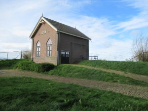 Op de app gevuld met Klompenpaden kan ik tegenwoordig zien welk Klompenpad het dichtstbij is. Tevens is het mogelijk om te markeren dat ik een pad al heb gewandeld. Zal ik zo steeds verder weg gaan naar de mij nog onbekende Klompenpaden? Ik kom voor vandaag (even rustig aan doen op deze Goede Vrijdag) uit bij het Netelenburchpad, een korte wandeling, dicht in de buurt en dit pad heb ik nog nooit gelopen. De steven gewend naar het gemaal van Netelenburch. Langs een smalle weg staat het gemaal op een verhoging langs het Zuideinde. Er is beperkte parkeerplaats, wel ruim voldoende zitplaats aan de picknickbanken onder kale bomen. Het gemaal heet trouwens niet Netelenburch, die naam is voorbehouden aan een naastgelegen oude boerderij, waar de familie van den Hengel een melkveebedrijf heeft. Het gemaal tooit zich met de naam Zeldert. Tegen het einde van de negentiende eeuw werd hier een stoomgemaal gebouwd, precies op de grens van wat nu Baarn en Amersfoort zijn. In 1926 werd het gemaal onder spanning gezet en kon de electriciteit zijn werk doen. Nu gaat het allemaal op de automatische piloot en zet het gemaal zich in voor de juiste waterstand van 10.000 hectare.