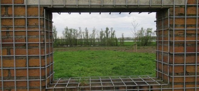 Waar Dorpsplein en Kerkstraat en Schoolstraat elkaar vinden staat niet alleen een kerk, maar ook basisschool ’t scathe. Ik ga maar eens beginnen en loop de Haspelstraat door. Meerdere vlaggen aan stokken maken bekend dat Max wereldkampioen is. Gelukkig komt geen enkele auto op hoge snelheid voorbij. Aan het einde van de Haspelstraat steek ik de Rijndijk over en ga de lange rechte weg door de Lobbendensewaard in. Deze weg met natuur links en rechts heeft een grote aantrekkingskracht op vrachtverkeer. Een enkele fietser waagt zich er. Enkele meters van de weg af, staat in de berm een bord ‘Zie je mij, zie ik jou.’ Geen reclame voor een opticien, maar een aansporing om een beetje op elkaar te letten op deze weg. ‘Recreatie met fietsen en wandelen’ ( zo als op een ander bord staat) komt wel in het gedrang met als die vrachtwagens. Wanneer ik de Kijfwaard nader zie ik links een steenfabriek en rechts een steenfabriek. Beide fabrieken met de naam Wienerberger. Een vrouw op een fiets gaat mij voorbij en zij groet mij, ik groet haar ook. Zij gaat langs het water in de zuidelijke richting. Het blijkt dat mijn weg ook die kant op gaat.