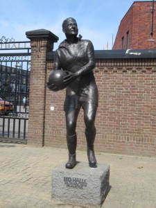 Met elke stap die ik zet kom ik dichterbij het nest van de adelaar. Vlaggen met geel en rood wapperen aan stokken. Regenpijpen zijn ingebreid met rood en geel en zwart. Waarschuwingen op bordjes dat hier alleen plaats is voor aanhangers van Go Ahead Eagles. Een volksbuurt met een volksclub. De buurt is niet veranderd. Soms ging ik met mijn broers op een zaterdagavond naar een thuiswedstrijd. Van heinde en verre kwamen mensen te voet naar het stadion. Nu sta ik er weer, na zoveel jaren. Voor mij staat Leo Halle (1906-1992), de beroemde Leeuw van Deventer, klaar om de bal uit te gooien. Hij verdedigde niet alleen het doel van Go Ahead (toen nog zonder Eagles), maar ook 15 maal dat van het Nederlands Elftal. Mijn oom Rom speelde met Robur & Velocitas tegen Go Ahead en Halle. Temidden van rood en geel verlaat ik deze buurt die in dit opzicht niets is veranderd.