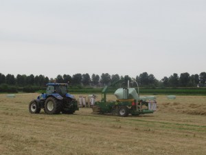 Even goed opletten en ik kom over andere paden, langs een ander standbeeld en toch kom ik uit bij de spoorbrug. Het uitzicht vanaf de spoorbrug komt mij bekend voor. Aan het einde van de brug loop ik door en passeer de trap naar de begane grond en verder. Over een geitenpaadje kom ik op het Zwarte Pad. Deze onverharde weg loopt evenwijdig aan het spoor. Vlak voordat ik Gelderland binnenloop sla ik rechtsaf tussen de meidoornheggen. Een auto van Vitens rijdt voor mij uit en doet stof opwaaien. Tegelijk voel ik een enkele druppel regen. Het gebied waar ik nu door loop was in de middeleeuwen de vuilstort van de stad Deventer. Gooi het over de rivier dan heb je er verder geen last van. Nu ziet het er anders uit. Akker na akker. Landbouwmachines rijden in grote getale over grasland. De oogst wordt binnengehaald. Eén machine zorgt er voor dat de rechthoekige balen ingewikkeld worden in plastic. Een ander voertuig pikt deze balen op. Van het Stadsland kom ik op de Lage Steenweg, de weg tussen De Worp en Terwolde. Ik steek deze weg over en kom op de dijk die ik even overloop en dan daal ik af naar Ossewaard. Bij het klaphek staan zes fietsen (drie keer m, drie keer v). Vanuit het boomrijke gebied hoor ik stemmen van jongelui. Ik weet inmiddels dat ik beter langs de omheining kan lopen om geen waterproblemen op te lopen. Zo kom ik terug bij de spoorbrug die ik onderdoor ga. Nog even over de grasdijk en dan ga ik het plantsoen van De Worp in. Het eerste dat ik zie is het uitgebreide speelgebied met de fraaie naam Woeste Willem.