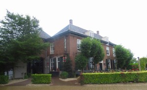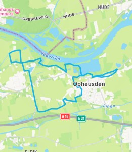 Ik steek de Tielsestraat over, langs boomkwekerijen, de Parallelweg over, langs boomkwekerijen. Vlak voor de hobbel van de Betuwelijn sla ik linksaf en wandel over de Varaker. Ook hier zijn vele grote kwekerijen, meestal met indrukwekkende huizen er bij. Roodbeen, Huibers, Sluiter. Kwekerijen in de openlucht en in enorme kassen. Voor de verandering steek ik de Parallelweg over, de Hamsestraat in, maar al snel ga ik van gebaande weg af en volg een graspad rond een vijver en dan langs het spoor, met links kwekerijen, het is hier een grote kweke-rij. Net wanneer ik bij een hoge heg klaar ben met mijn natuurlijke plicht passeert een ouder echtpaar mij. Gewoon twee mensen in het veld, zonder rugzak, zonder overlevingspakket, gewoon de ene voet voor de andere. Op het parkeerterrein van de voetbalvereniging haal ik hen in. De terreinknecht trekt lijnen over het groene gras. Hier wordt talent gekweekt. Verder zijn de velden verlaten. Ik kruis de Gerrit Achterbergstraat. Deze dichter ( 1905-1962) gaf van 1924-1930 les op de plaatselijke Hervormde school. Hij groeide uit tot één van de belangrijkste dichters van Nederland. Mooi dat hij hier in Opheusden een straat heeft gekregen. Op de Casspersstraat aarzel ik licht over de te volgen route. Een dame op een fiets bemerkt mijn aarzeling en roept naar mij: Daar is het pad en zij wijst de goede richting. En zowaar …. het smalle pad in Opheusden. Ik kom uit op de Hamsestraat. Vrolijke kinderen fietsen voorbij. Ik ga een nog smaller pad dan zojuist in. Het Vispad. Wordt hier vis verkocht? Is er een visvijver? Links en rechts zijn kleine percelen, kleine tuintjes en huizen, verscholen achter bomen en struiken. Een man met kind op de fiets komt mij tegemoet. Aan het einde met een steile klim kom ik op de Rijnbandijk. In de verte zie ik viswater.