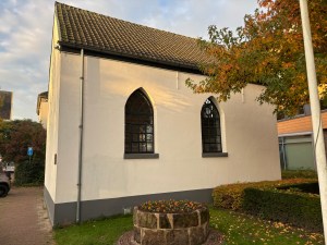 Na ons ontbijt neem ik afscheid van Dinie en mijn overnachtingsadres. Zij wijst mij nog op de meerdere godshuizen in het dorp. Mijn aandacht gaat voorlopig eerst uit naar de synagoge in het dorp. Bij de plaatselijke Appie koop ik een liter smoothie en een peer. Dat past nog in mijn rugzak. Dan ga ik op zoek naar de synagoge. Gisteren zag ik een wegwijzer daar naar wijzen. Een vrouw die boodschappen in haar fietstassen stopt vraag ik naar de syangoge. Is hier een synagoge?, is haar ontwapenende antwoord. Zij woont sinds begin 2024 in Haaksbergen en is niet bekend met een synagoge. Zij komt uit Enschede en is wel bekend met de beroemde synagoge aldaar. Haar inburgering is nog in volle gang, zo spreek ik mijn vermoeden uit. Dan een deur verder en daar bij de Zuivelhoeve zijn de dame en de heer die hun uitstalling op straat zetten beter op de hoogte. Ik ga verder en kom uit bij de synagoge. Deze ligt vlakbij de Markt en aan de Ruissenborgh. Het gebouw is in de loop der jaren delen kwijtgeraakt door afbraak. Nu rest een mooi wit gebouw van 7 meter bij 10 meter. Hier komt de Liberaal Joodse gemeente Twente bij elkaar voor hun vieringen. Ik loop de weg terug die ik gisteren liep, de brug over de Buurserbeek, over het erf van de boerderij, over de Kalkdijk, langs de manege, over één poot van de driehoek en verder over de Kalkdijk. Onverhard tussen velden en door bosgebied.