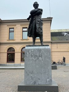 Voor het stationsgebouw van de Hanzestad Zwolle staat Johan Rudolph Thorbecke, die in Zwolle werd geboren op 14 januari 1798 en overleed op 4 juni 1872 in Den Haag. Zijn familie was afkomstig uit Duitsland, waar hijzelf later ook enkele jaren werkte. De grootste roem die Thorbecke vergaarde was als voorzitter van de Grondwetscommissie, aangesteld door koning Willem II, die er voor zorgde dat er in 1848 een Grondwet kwam in Nederland. De Grondwet was grotendeels het werk van Thorbecke zelf. Ik ga er vanuit dat Zwollenaren zich goed houden aan onze Gronwet als eerbetoon aan hun voormalige stadsgenoot.