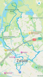 Over de Kloksteeg kom ik bij de noordelijke bebouwing van Zwolle, langs de wijk en het smalle water ga ik verder. Een man blaast het pad schoon nadat maaiwerkzaamheden zijn geweest. Op een groenstrook tussen water en huizen neem ik mijn rust op een bankje. Aan de overzijde van het water zie ik twee hazewindhonden snel heen en weer gaan. Door een groenstrook langs de Middelweg kom ik uit bij de wijkboerderij De Eemhoeve. Een jongen loopt met zijn handen vol naar zijn fiets. Zijn kameraad aarzelt in een deuropening van een schuur. Ik kan hier koffie en thee krijgen voor 50 centen. Het water van De Dobbe is aan mijn linkerhand wanneer ik verder loop. De groenstroken zijn hier nog en ik ga verder. Wanneer ik op weg ben naar de onderdoorgang van de A28 komt een schoolklas mij tegemoet op het trottoir. Elk kind heeft één of meerdere boeken in de hand. Wordt dit een leesles langs De Dobbe? Of op de wijkboerderij? Langs een dahliatuin en een biologische tuindersverening kom ik in Park De Hogenkamp. waar de paden door het groene gras slingeren. Dan een zijtak van de Molenkampsweg, waar ik langs een muur van het Roomskatholieke kerkhof loop en de bovenhelft van een grote kapel zie. Aan mijn linkerhand zijn oude graven te zien. Dan door de Indische buurt en langs de huisjes van het Gasthuis. Langs de oever van de Nieuwe Vecht kom ik op de Philosophenallee. Het is mij niet duidelijk welke filosofen hier hebben gewoond. Misschien biedt een infobordje aan de gevel van een woonhuis helderheid. Ik loop de voortuin in om de tekst te kunnen lezen. Helaas, het gaat om Henk Sneevliet, die niet bekend staat als filosoof. Henk Sneevliet woonde van 1905-1908 hier op een bovenwoning. Hij was gemeenteraadslid in Zwolle en later lid van de Tweede Kamer. In 1942 werd hij bij Kamp Amersfoort gefusilleerd. Internationale bekendheid kreeg Sneevliet toen hij in onze Indische kolonie meehielp om een communistische partij op te richten. Daarna kreeg hij in vroege jaren 1920 het verzoek van de Komintern (de Communistische internationale) om in China een communistische partij op te richten, daar maakte hij kennis met ene Mao. Sneevliet op zijn bovenwoning achterlatend steek ik het Almelose kanaal over, waar ik mooi zicht heb op een watertoren die verbouwd is tot appartementengebouw. Over het Kerkbrugje kom ik terug in de oude binnenstad, langs de synagoge, door de Herman Broodsteeg, door de poort van de Sassenpoort, over de brug van de Sassenpoort en dan langs de volle Huiskamer naar het station.
