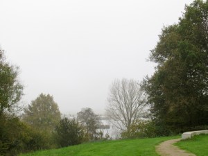 Aan de overkant van de Middelweg ligt de Urksteeg. Al snel kom ik bij de Dijklandhoeve. Hier is een boerderijwinkel, als onderdeel van de Zwolse Stadslanderijen. Leuk onderdeel zijn de pipokippen met hun pipo-eieren, een paar passen verderop zie ik de pipowagen met de kippen rond en onder de wagen, de kippen krioelen in het hooi dat op hun perceel ligt. Of je door het eten van pipo-eieren clownesk wordt weet ik niet. Misschien krijg je een aanstekelijke lach. Er is nauwelijks verkeer op de Urksteeg. Een vrouw op de fiets en een vrouw op de fiets met een hondenkar er achter en de hond loopt frank en vrij. Een smal verhard pad gaat naar de bossen van Westerveld. De hond loopt daar voor zijn baasje uit. Een kar van een groen kinderverblijf staat geparkeerd in een berm. Een enkele wandelaar is onderweg. Op het ontmoetingspunt van de Kolksteeg en de Langenholterdijk begint een lus door het bos en langs randen van het Zwarte Water en de Noorderkolk. Tegelijk zijn hier onzichtbare werkzaamheden bezig aan een fietspad. Met dat werk zijn de mensen nog tot in volgend jaar bezig. Ik wandel door het verlaten bos en kijk in nevelige verten. Het bos is als een recreatiebios aangelegd op een oude vuilnisbelt. In de vorige eeuw is ongeveer 50 jaar lang het vuil van Zwolle hier neergelegd. De belt werd uiteindelijk ongeveer 15 meter hoog. Daar is een meter grond overheen gelegd. En nu is er bos en kan er worden gewandeld, wel uitkijken voor mensen op vuilnisbultbikes, die langs kunnen suizen. Gelukkig vandaag niet.