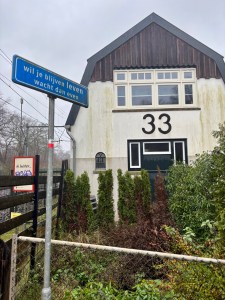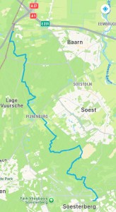 Mijn schaapjes heb ik vandaag niet op het droge kunnen krijgen, want gedurende de hele wandeling heeft het geregend. Tijdens de busrit van Hilversum naar het crematorium van Laren oftewel bushalte De Heidebloem deed ik mijn regenbroek al aan. Ik kan in de regen geheel beschermd uitstappen op het eenzame fietspad. Op de hoek met de straat genoemd naar theoloog, arts en organist Albert Schweitzer zijn een paar mannen van het kadaster bezig om metingen te verrichten. Dan kan de topografische kaart van mijn app t.z.t. ook worden aangepast aan de veranderde situatie ter plekke. Ik wandel in het spoor van Albert en zie links een ingang tot Amerpoort, even verder een ingang tot conferentiecentrum Drakenburg. Of er wordt geconfereerd kan ik op afstand niet zien. Het ziet er heel rustig uit. In De Schaapskooi kan ook afscheid worden genomen op passende wijze. Ik wandel verder over de grens tussen Noord-Holland en Utrecht, zelfs wanneer ik het spoor oversteek. Aan een metalen paal zie ik de markering van het Westerborkpad. Dit betekent dat Wandellief en ik hier hebben gewandeld. Linksaf de bossen en dat blijft vele kilometers zo. Bos na Bos. Regen na Regen. Voordat ik bij de Hilversumsstraatweg kom passeer ik een interressante vijver. Het is de Kruisvijver. Even daarvoor was ik langs de Pannekoekvijver gekomen. Vijvers wijzen op menselijk ingrijpen. Ingrijpen van mensen die tijd en geld en personeel hadden om in te zetten om hier en daar een vijvertje aan te leggen. Middenin de pannekoek ligt een eilandje, een opgehoogd eilandje. Die Kruisvijver lijkt met enige goede wil inderdaad op een kruis. Daar waar de twee ‘balken’ van de vijver elkaar raken is een rond eilandje gemaakt. Hier in de buurt hebben landhuizen gestaan, die het niet zo lang hebben volgehouden als de vijvers. Langs de boswachterij De Vuursche kom ik bij de drukke Hilversumsestraatweg die ik oversteek om vervolgens de onverharde Vinkenlaan in te gaan. Hier geen auto’s en andere voertuigen. Die staan aan de andere kant van de asfaltweg waar een Klimbos en een Theehuis is. Inmiddels heb ik terrein van Landgoed Pijnenburg (eigendom van de familie Insinger) betreden en die tocht zal nog wel even duren, want dit landgoed is enorm uitgestrekt. Een heideveld van De Stulp is in het verleden (alleen toen?) gebruikt voor de jacht, maar gelukkig vliegen hier de kogels niet om mijn oren. Voorbij het Pluismeer staat een groot hek van landgoed Pijnenburg. Het is bedoeling dat fietsers hier worden tegengehouden, ook de borden wijzen daarop. Alleen wandelaars en paarden van Brandenburg mogen hier door. Ik ga de lange brede rechte weg op. Rechts ligt een beschermd natuurgebied achter een hek. Een oud huis gaat links schuil achter de naam De Leen. Aan het einde van deze Stulpselaan zie ik rechts het Landhuis. Een paar passen verderop ligt de Biltseweg klaar om overgestoken te worden.