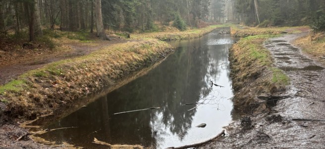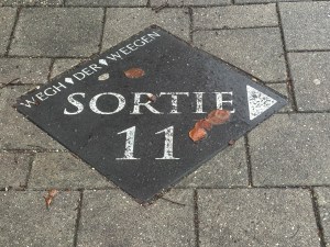 Na mijn pauze ga ik verder door de bossen. Op de kaart kom ik nog steeds de naam Pijnenburg tegen. De Turfweg kruis ik. Langs (voormalige ?) zandverstuivingen en over kronkelpaadjes omhoog en omlaag (heel mooi deel op de route) ga ik verder naar de bebouwde kom van Soest. Op de hoek van sportvelden gaat de route het spoor over en de Lange Duinen in. Hier kan ik nog even ploeteren door het mulle zand. Op zonnige dagen is het hier een grote drukte. Grote mensen. Kleine mensen. Honden groot en klein, gehoorzaam en ongehoorzaam. Verliefde stelletjes. Vermoeide fietsers. Bezette picknickbanken. Nu is de zandvlakte bijna uitgestorven. In hoeken van het terrein ontwaar ik een enkele wandelaar. Weer een spoorlijn over en dan de Paltzerweg op, van de weg af, langs de voormalige luchtmachtbasis Soesterberg en dan het Landgoed Paltz op. Hier is het Arts Center van Herman van Veen gevestigd. Op de klinkerweg en op de onverharde paden kom ik hem niet tegen. Een paar meter van de route af kom ik bij de folly van de kluizenaarsgrot met een doolhof dat er omheen ligt. Ik blijft op gepaste afstand om de kluizenaar niet te storen. De route gaat verder over het landgoed dat dateert uit 1867, langs het grote huis waar de lichtjes branden. Er is warme chocolademelk te verkrijgen tegen gepaste betaling. Hier is het centrum van de kunsten. Als een verzopen wandelaar ga ik verder, langs een kitscherige uitstalling met de kerstman (meneer Sint moet vanavond nog op bezoek komen!). Ik heb daarna mooi zicht op een verregende vallei. Vervolgens ga ik door de hoofdingang van het Landgoed naar de buitenwereld. Ik volg het pad over de Soester Hoogt en kom langs het restaurant dat op de hoogte ligt. Dan volgt de route de doorgaande weg. Deze weg komt uit bij de Wegh der Weegen, de eeuwen oude verbinding tussen de stad Utrecht en de stad Amersfoort. Niet de minste krachten zijn ingeschakeld om van deze weg een succes te maken, want de architect Jacob van Campen (1596-1657) mocht een rechte lijn op de kaart zetten in de 17e eeuw. Er werd niet op een meter meer of minder gekeken, want de weg werd 60 meter breed. Met gepaste eerbied steek ik deze weg over en kom bij het hek van Kontakt der Kontinenten. In de vorige eeuw was hier een seminarie waar jonge mannen werden voorbereid op het werk van priester, zowel in binnenland als buitenland. Ik ga het smalle pad door het kleine bosperceel op, een man komt met enige haast mij tegemoet op het modderpad. Ik loop voor het grote gebouw langs waar nu de ene konferentie na de andere wordt gehouden en waar gelegenheid tot overnachten is. Via een andere in- en uitgang voor voetgangers ga ik het terrein af en loop naar de bushalte, waar ik de man van zoëven zie staan. Hij vraagt mij: