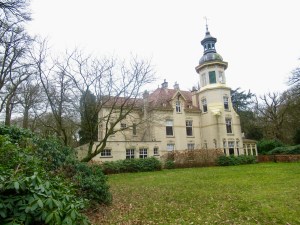 Een flinke blikvanger op het landgoed is het grote huis Oud Groevenbeek dat is gebouwd in 1908 in de toen heersende stijl van de Jugendstil. Het grote huis wordt ook wel ‘kasteel’ genoemd, maar bij een kasteel heb ik toch een ander beeld. Is dit de invloed van het Engelse gezegde My home is my castle? Het pand wordt niet meer particulier bewoond. Wel is het mogelijk om er een nachtje te verblijven (en een deel van de dag). Aan de overzijde van het onverharde pad zie ik een fraaie oude kas en iets verderop, tussen de bomen, een watertoren, die er er niet probeert uit te zien als een watertoren. Over het landgoed stroomt water door goed onderhouden beken en rijden fietsers over rustige paden. De horecagelegenheid is gesloten. Wie loopt er hier ook op een dinsdagmorgen?!