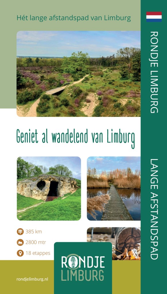 Hoe steekt de gids in elkaar? Eerst maar eens de kern van het verhaal, de 18 etappes (tussen de 18 en 24 kilometer per etappe). De start van de route ligt in het diepe zuiden, in Eijsden, maar je kunt uiteraard overal beginnen waar je maar wilt. Elke etappe wordt voorafgegaan door een korte beschrijving (met goede foto’s), de verdeling van de kilometers over verhard, onverhard en onbekend, het aantal kilometers en hoogtemeters. Daarna volgen er vier gedetailleerde kaartjes (1:25000) met de ingetekende route. Eerst was het even wennen om de groene lijn op de kaart te vinden, maar dat is een kwestie van gewenning. Op deze groene lijn is met een bolletje een kilometer aangegeven. Er is geen routebeschrijving stap voor stap, maar wel is het mogelijk om elke etappe te downloaden van de website Rondje Limburg (even klikken), zodat je digitaal voorzien bent. Daar vind je ook de meeste recente informatie bv over overnachtingsmogelijkheden en horeca en het Openbaar Vervoer. Die overnachtingplekken zijn wel een aandachtspunt, want de etappes eindigen (en beginnen) lang niet altijd in de buurt van een wat grotere plaats. De route gaat veelal door landelijk gebied. Daardoor is een goede planning van groot belang.