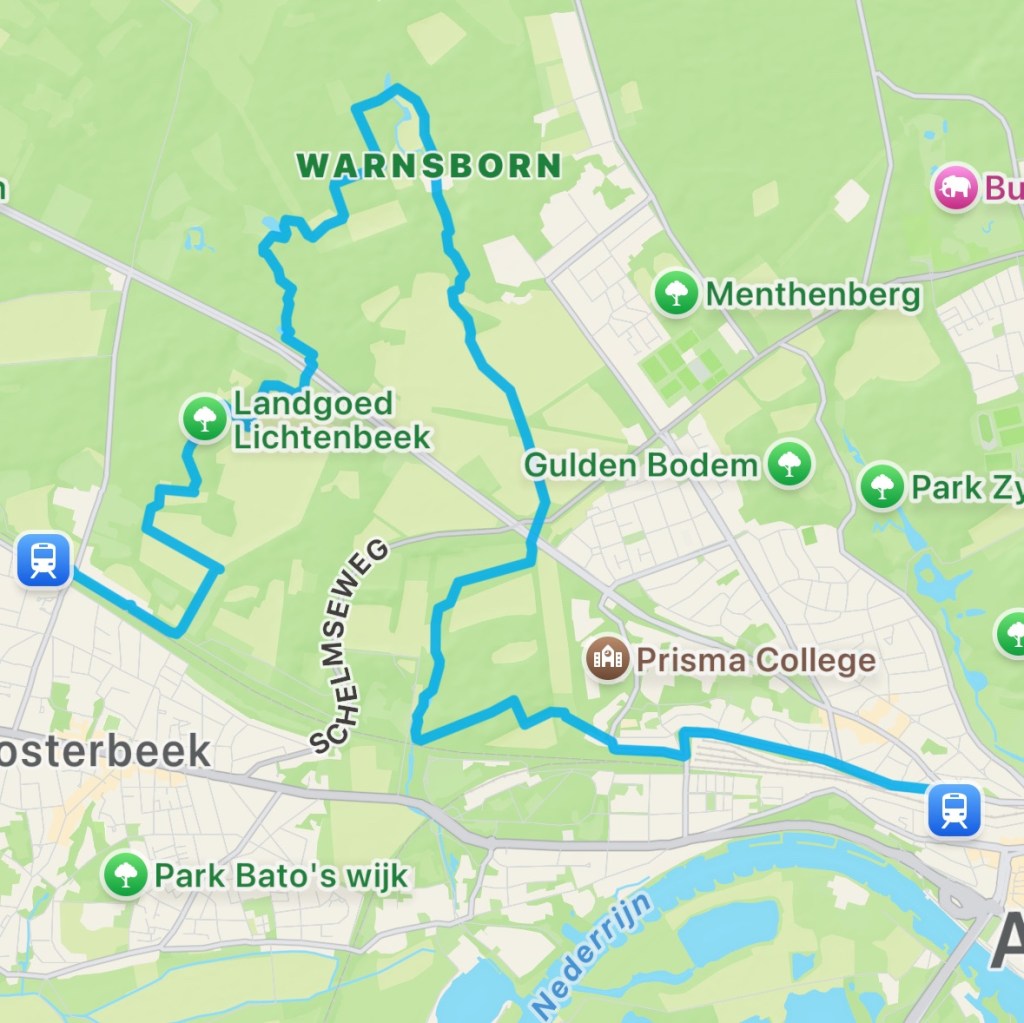 wandeling 13 : station Arnhem Centraal naar station Oosterbeek – 11 kilometer