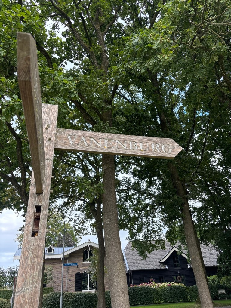 Daar sta ik dan op het station van Putten. Een vader en dochtertje zwaaien familie uit die met de trein naar verre oorden gaat. Twee vrouwen komen net te laat met koffers op het perron en kunnen nog een half uur door praten in het Engels. De afscheidsknuffel (of ‘hug’ in modern Frans) is al gegeven, maar het afscheid is door de vertrekkende trein uitgesteld. Ik wandel naar het westen om mijn route op te pakken. Op de vorige wandeling nam ik afscheid van de route op het punt waar de Zuiderzeestraatweg en de Vanenburgerallee elkaar ontmoeten. Daar ben ik nu en zie de hand-en voetwijzer. De fietslaan ligt smal voor mij en ik loop die op en ga vervolgens het groen in op de grens met een automobielbedrijf van Nederlands formaat. Hier loopt het spoor van een Klompenpad, dat achter het kasteel Vanenburg gaat en achter een imposant huis gaat tot ik bij de Engersteeg ben aanbeland. Op de rand met de Vanenburgerallee is een kunstig informatiebord met gegevens over een joods gezin dat hier in de buurt onderdak en onderduik zocht. Niet iedereen bracht het er levend van af. De dood heeft lange armen en handlangers. Langs een pluktuin waar een haan de boventoon voert, zijn harem is er niet van onder de indruk.