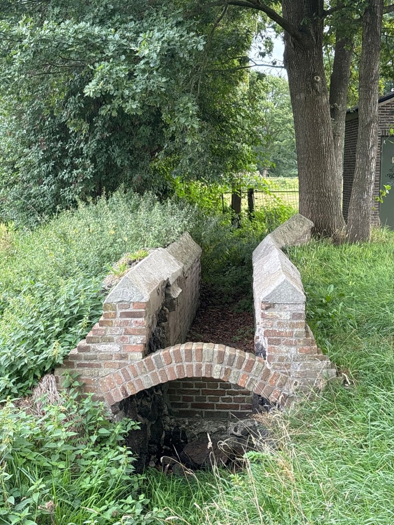Aan de linkerkant van de Engersteeg zie ik een merkwaardig bouwwerk dat in de kiem schijnt te zijn gesmoord. Op het naastgelegen informatiepaneel wordt duidelijkheid verschaft. Dit kunstwerkje heeft te maken met een waterval die hoorde bij Vanenburg. De toenmalige heer van Vanenburg, Hendrik van Essen, liet een paar meter verderop naast de huidige driesprong een papiermolen bouwen. Het water van de beek zette de boel in beweging. Tot ongeveer 1850 verrichte de molen nuttig werk en toen hield het op. In 1874 werd de molen afgebroken. maar dat lieten latere eigenaars, meneer en mevrouw Van Pallandt niet op zich zetten en zij gaven in 1909 opdracht om er een leuk romantische plekje van te maken. Maar de romantiek duurde niet lang want hun famielilid Hugo, baron van Pallandt liet het in 1918 afbreken. Hij gaf aan de opwekking van electriciteit door stromend water de voorkeur boven de romantiek. De drooggevallen waterval is nu weer in ere hersteld. Het wachten is op water. Over de Beekweg ruil ik het akkerland in voor de bossen ten noorden van Putten. Vlak bij de Volenbekerweg zie ik de eerste wandelaars. Aan het einde ga ik achter camping Brem en Den langs waar ik campinggasten aan het ontbijt zie of het kan ook een zeer vroege lunch zijn. Dan klopt landgoed Oud-Groevenbeek aan de bosdeur. Slingerpaden brengen mij steeds verder op het landgoed, achter langs het Theehuis, waar mensen zitten op het terras en ik hoor verborgen kinderstemmen roepen. De weg tussen Putten en Ermelo steek ik over. Zo verlaat ik Oud-Groevenbeek en kom ik terecht in Nieuw-Groevenbeek. Dit laatste is een particulier landgoed van 80 hectaren . Een oude dame schuifelt langzaam van de ene berm naar de andere berm, waarachter een ruim huis staat. Meerdere houten huizen zie ik staan langs de randen van de weg die ik afloop. Het huidige landgoed is mede begonnen door meneer en mevrouw Jongeneel in de negentiende eeuw. De heer Jongeneel was houthandelaar in Utrecht. Ik kom terecht op de Oude Arnhemse Karweg, een breed fietspad en wandelpad, maar een automobilist met een kleine Engels auto ziet kans ook op deze weg te rijden. De Karweg heeft links en rechts meerdere woningen in het groen. Deze weg komt uit op de Grieteweg, die ik rechtsaf op ga. Ik ga nu niet naar Arnhem. Door het Putterbosch slinger ik verder naar het zuiden. Na tien kilometer neem ik zitting op een boomstronk op de hoek van paden. Tijdens mijn vroege lunch passeert een man op een fiets, aan zijn riem beweegt een hond mee.