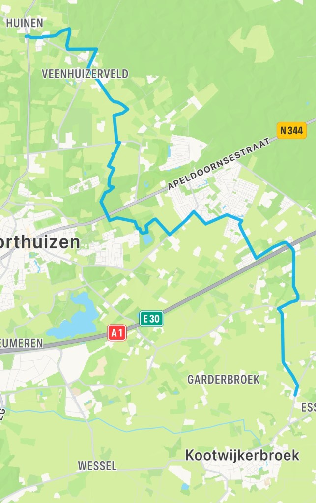 Veenhuizerveld (Huinen) naar Bushalte Garderbroekerweg, Kootwijkerbroek