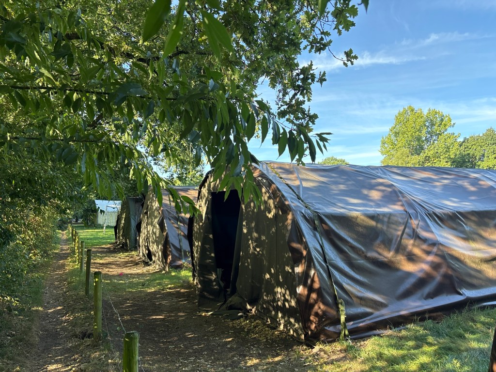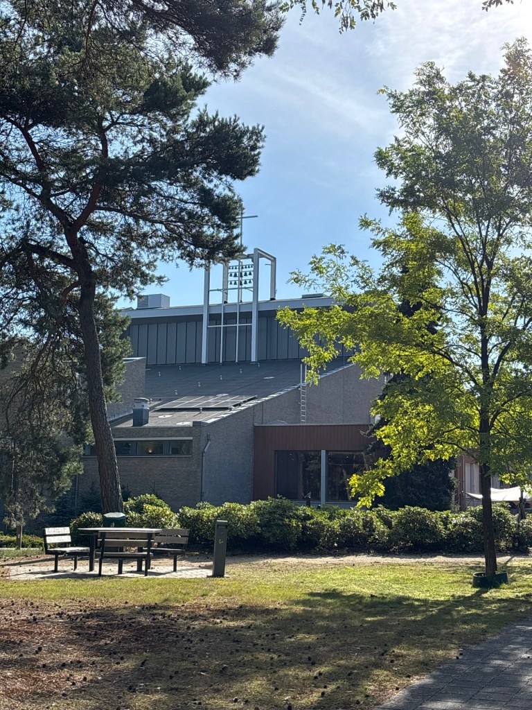 De chauffeuse van de Tesla Haltetaxi van gisteren is ook vanmorgen paraat. Dit keer rijdt zij mij in één rit naar de bushalte bij het station van Barneveld Centrum. We praten over wandelen en over het Westerborkpad dat ook door Nijkerk komt. In Barneveld heb ik de tijd om te wachten op de bus naar Arnhem. Ik stap in en op tijd weer uit zodat ik in Otterlo kan beginnen aan de volgende etappe, etappe nummer 12. Het is al druk op de doorgaande weg in Otterlo. Gelukkig kan ik snel afscheid nemen van deze weg en ik ga het Mosselsepad op en dan op een splitsing ga ik verder op de Koeweg, waar op dit tijdstip geen koe is te bekennen. Het zijn blijkbaar meer avonddieren. Rond een recreatiecentrum en dan de bossen in in de omgeving van de Valksebeek, maar veel beek is er niet. Het is droog in de bossen. Bij het Mussennest staan grote legertenten opgesteld op een rij. Een enkele jongere is nog binnen. Velen zijn er al in geslaagd om naar buiten te komen. Exodus Events organiseert hier kampen voor kinderen uit ‘minder bedeelde milieus‘. Ik kan langs de bosrand achter de tenten langs gecamoufleerd mijn weg voortzetten. Dan weer langs de Valksebeek, die op meerdere plaatsen tegelijk aanwezig is. De Veluwe levert je mooie streken. Dan kom ik langs de volgende groepsaccomodatie, namelijk die van Woudegge. Ook hier zijn veel kinderen op de been, een lange rij fietsen staat bij de accomodatie. Ik sluip door het bos en steek een weg over en kom uit in Roekel. Dit is hier een groot bosgebied waar ik door heen loop totdat …
