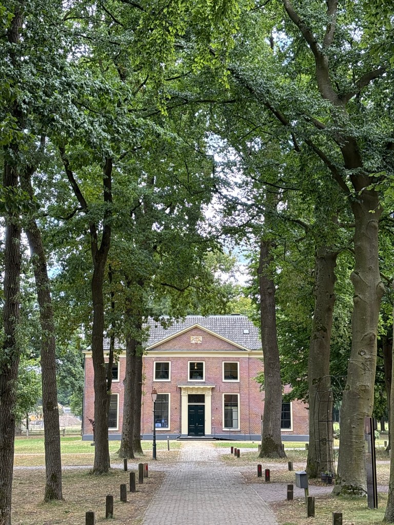 Ik verwijder mij van het erf en de directe omgeving van de molen. Opvallend is dat hier meerdere bankjes zijn. Blijkbaar is deze plek op andere dagen een trekpleister. Ik loop lamngs de Natuurwerkplaats Zonneoord. Zat hier vroeger niet een bedrijfje van het Leger des Heils? Zorg voor mensen en de natuur gaan hier hand in hand. Bij de Doesburgerbuurt ga ik het bos in, samen met een Klompenpad. Ik steek de Kernhemseweg over en dan moet ik mijn route aanpassen want een groot hekwerk verspert de weg. Er wordt middels een bord gewezen op werkzaamheden en data onderstrpen het geheel. Omlopen is hier geen probleem, maar op andere ingangspunten voor het bosgebied zie ik omgevallen hekwerken. Het lijkt mij stug dat dit door de wind komt. Ik kom langs een biologische zorgboerderij waar de gedachten van Rudolf Steiner leidend zijn. Inmiddels valt het projekt onder ’s Heeren Loo. De website van de club loopt meerdere jaren achter. Dat overkomt mij ook regelmatig. Op een bankje langs de laan die zicht geeft op Huis Kernhem zit een oudere man. Meneer, weet u hoeveel koeien er in dat weiland staan? en hij wijst naar de overkant van de laan waar achter in het weiland koeien zijn te zien. Dat kan ik van deze afstand niet zien, zeg ik. Ik kan dat wel, geeft hij aan, 0. Alle koeien liggen. Er is geen speld tussen te krijgen. Ik maak mij uit de voeten, zwaaiend naar de man. Langs het pannenkoekenhuis waar de zoete geur van poedersuiker de ramen uitkomt. Ik versnel mijn pas. Langs het Huis, oversteken en de Doolhoflaan in. Dan langs de uitgestrekte begraafplaats. Ik neem plaats op een bankje aan de zuidkant, vlakbij een aantal oorlogsgraven van jonge mensen die vochten tegen het kwaad van de nazi’s. Een man doet het grote hek dicht. Vandaag zal er niet meer worden begraven. Bij de rotonde op de Apeldoornseweg (ja, diezelfde) steek ik de weg over en ga het volgende bos in. Langs de bosrand en de Bosrand en dan de bebouwde kom met de Componistenbuurt. Brede straten en ruime huizen en veel monumenten die wijzen op oorlogen en geruchten van oorlogen. Ik mis het Joods Monument omdat ik de andere kant uitkeek naar het Mausoleum voor verzetstrijders. bHet Indiëmonument zie ik wel. Op een driehoekig stukje groen zijn hekken geplaatst die kunnen dienen nals fietsenstalling. Daarachter is het Openluchttheater. Langs militaire namen en voormalige kazernes kom ik bij station Ede/Wageningen. Dan wordt het tijd om te kijken wat de beste manier is om thuis te komen. Eerst een trein, dan een bus. Wanneer ik in de trein zit, stappen drie jonge meiden met een quasi-Lunterse uitdossing in. Op het station Lunteren stappen zij uit.