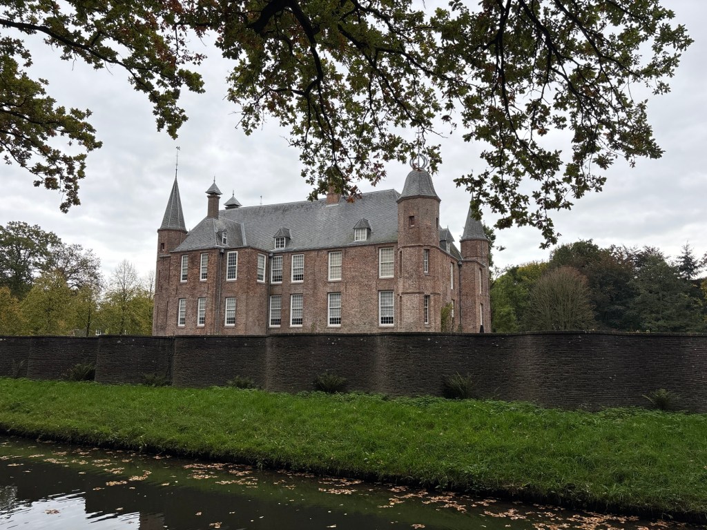 Met behulp van een brug steek ik de Vecht over en ga de polder in, waar hardlopers heen en weer gaan. Rechts is een groot sportcomplex. Er kan met handbogen worden geschoten maar nu gelukkig niet. Door een strook bos kom ik bij de Slotlaan. Dat betekent dat ik aangekomen ben bij Slot Zuilen dat aan de andere kant van de sloot ligt. Wat ook aan de andere kant van de sloot ligt is een woning (voormalige boerderij?). Het staat Te Koop. Zouden politici dit bedoelen met ‘betaalbare woningen’? Ik kan hier wel verklappen dat het Slot Zuilen niet bij de prijs is inbegrepen. Op de Groeneweg kijk ik nog even bij de boerderij van Kees en Marjan, een melktap en de machine voor softijs staan in een schuurtje. Verderop aan de Groeneweg is de achteringang voor Slot Zuilen. Helaas. Het hek zit dicht. Op een klein bordje staan de openingstijden (nu open!) en een telefoonnummer. Ik bel en een man vertelt mij dat hij binnen enkele minuten bij het hek zal zijn. Het klopt en het grote hek gaat voor mij open. En meteen stromen meerdere mensen naar binnen. Het is inmiddels lunchtijd en ik besluit om de dagsoep in het Museumcafé te nemen. Het is iets met bloemkool en nog een paar ingrediënten, uit eigen tuin is de bedoeling. Het smaakt prima en ik eet en drink buiten in de frisse lucht.