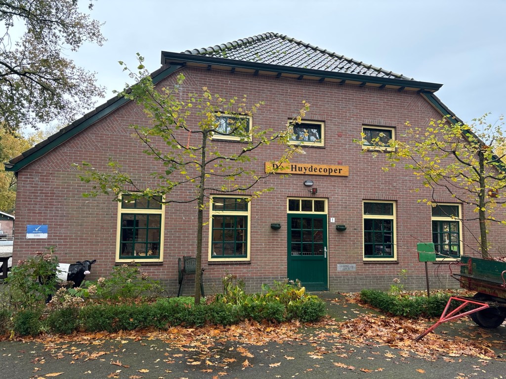 Dan stopt het park bij een hek. Hier begin het terrein van Amerpoort, een instelling voor mensen met een verstandelijke beperking. Met een druk op een knop opent zich het hek. Na ons gaat het hek dicht. We wandelen naar het terrein van een kinderboerderij. In boerderij De Huydecoper brandt licht. Buiten worden we geïnformeerd dat er binnen wat te drinken en ijs te likken valt. Aan dat laatste hebben we niet direct behoefte. Ik zie een dame achter een balie staan en we besluiten naar binnen te gaan. We kunnen aanschuiven aan een tafel bij mannen die er al zitten. Thee en koffie wordt geserveerd. We praten over de instelling en over het werk. Jongelui komen binnen met eieren die ze net hebben geoogst. De eieren gaan voorzichtig in een treesje. Zij zijn te koop, maar een paar eieren in de rugzak is geen aantrekkelijk vooruitzicht. Er is ook honing te koop. IJs is er momenteel niet, begrijpen we. De koekjestrommel zit nog achter slot en grendel, de man met de sleutel zal zo wel komen, horen we van de jongedame. De mannen vertellen wat zij hier doen. Zij vertellen over de aanstaande fusie van Amerpoort (van oorsprong Rooms-Katholiek) en Sherpa (van oorsprong protestant) tot een nieuwe organisatie: Eemhart. Dit gaat gebeuren per 1 december. Door een raam zie ik de geitenstal, onder hetzelfde dak als ons tijdelijke onderkomen. Met een paar koekjes in de hand verlaten wij deze gezellige plek, nadat de jongedame in kwestie nog verteld heeft over haar familielid Wanda (ja, die van Wanda Wandelt). We gaan verder over het terrein van de kinderboerderij en langs groepshuizen en dan steken we de A27 onderdoor.