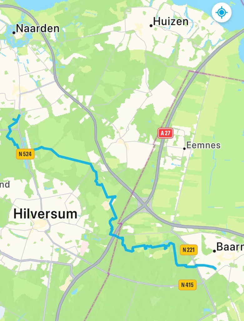 Gisteravond gingen de berichtjes over-en-weer. Hoe gaat het met de regen? Met de regen gaat het goed. De verwachting is dat in de omgeving van Baarn 10 mm regen gaat vallen. Maar hoe gaat het dan met ons? Wij willen gaan wandelen van station Baarn naar station Bussum-Zuid. We besluiten om onze waterdichte schoenen aan te trekken en toch te gaan.