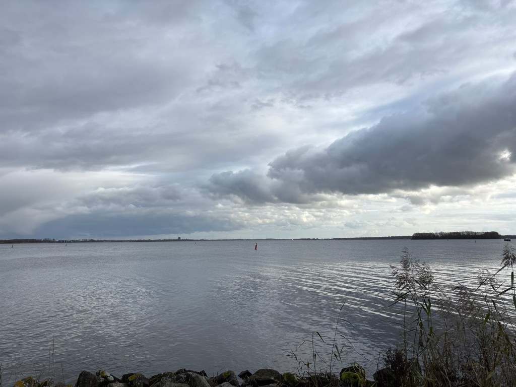 Dan komen we bij de groene rand van Muiderberg. De rand tussen bebouwing en water. Een aangelegd parklandschap viert een golvend bestaan, alsof het park is aangelegd bij vloed. Henk steekt een paraplu op, die kortstondig het gevecht met de opstekende wind verliest. De balijnen wijzen de verkeerde kant uit. Met enig doelmatig ingrijpen komt de plu terug in de oorspronkelijke stand. Aan het strand is een strandpaviljoen, geheel passend bij de omgeving. Het palviljoen draagt de naam De Zeemeeuw, terwijl wij constateren dat zeemeeuwen niet bestaan. Misschien zijn deze volgels ooit opgegeten in een voorganger van dit paviljoen. Binnen is het warm en het drinken is warm en de soep idem dito. Om nog maar niet te spreken van de kroket en de omelet en de gesprekken aan andere tafels. We hebben uitzicht over het water en binnenkomende gasten. Alles is onder contrôle. We bestuderen het einde van onze etappe en de mogelijkheden om daar te vertrekken met het openbaar vervoer. Er is een ‘korte’ route met meerdere overstappen en een ‘langere’ qua duur met minder overstappen. We zullen ons laten verrassen. We stappen op en gaan de wind in en de frisse luchten. Langs het water en dan hoog langs de Dijkweg. Een moeder fietst met twee kleine kinderen tegen de wind in in de richting van Muiden. In de verte zien wij het Muiderslot. Van deze afstand kunnen wij niet zien of er nog rederijkers aanwezig zijn, die bij een knapperend haardvuur elkaar gedichten voordragen. We passeren een oud huis dat op de dijk is gebouwd. Aan de overzijde van de weg staat een nieuw huis in moderne stijl. Ter hoogte van de Noordpolderweg verandert het pad. Het lijkt een vrij nieuw onverhard, maar stevig, pad. Dit loopt iets prettiger dan op pad waar het glijgevaar steeds langs het pad loert. Wanneer wij bij de vestinggracht komen gaan we naar het zuiden. Henk vertelt over een concert dat hij jaren terug in het slot bijwoonde. We gaan Muiden binnen, maar, helaas, in het Muizenfort is geen openbaar toilet. Dit betekent dat de volgende alarmfase bij mij intreedt. Langs het Ravelijnspad en de vesting gaan we naar Fort H. Zonder het in de gaten te hebben loop ik door een achteringang naar binnen en ga linea recta naar de juiste plek. Daarna ga ik naar buiten en dan krijg ik een telefoontje. Henk zit binnen bij het openhaardvuur. Nu is die haard niet zo open want er zit glas voor het vuur. Ik ga naast het glas zitten en krijg, op bestelling, een glas rooibos. Even rust. Na onze pauze gaan we naar de bushalte aan de Mariahoeveweg. Na een korte wachttijd nemen we de bus naar een P+R, waar meerdere bussen vertrekken naar het Amstelstation te Amsterdam. Dan de lange treinreis, deels staand, naar een warm huis. Na de twee busritten vragen wij ons af hoe je in de deze buurt nog een zandpadgarantie kan krijgen. Zoveel verharding. We hebben de volgende etappe nog niet op de website van http://www.wandelzoekpagina.nl zien staan. Maar deze etappe hebben we achter de rug. Weer een geheel andere landschap dan eerdere etappes. Op naar Amsterdam.