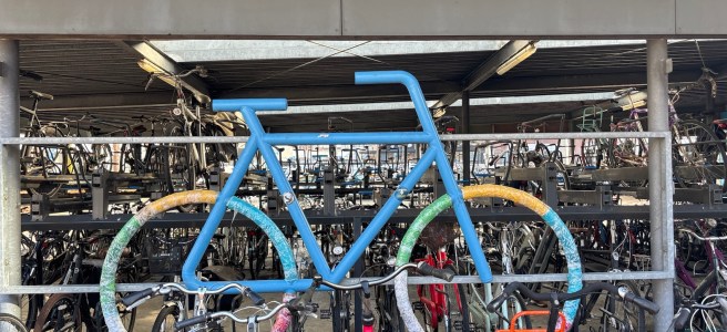 Een hele dag parkeren voor €8. Dat is te doen. Vooraf betalen. Geen verrassingen achteraf. De naam van het parkeerplein doet vermoeden dat de stad Wageningen in een ver verleden gastvrouw is geweest voor de Olympische Spelen. Het jaartal kan ik mij niet herinneren. We gaan een klein stukje route gelijk op met het einde van onze vorige etappe. De etalage van De Beschte, tweedehandsboeken, wordt bekeken en wij ontdekken meerdere boeken van de onlangs overleden Cees Nooteboom. Bij IMAGINE zeggen we: misschien aan het einde van de dag. Langs Hotel De Wereld, met bevrijdingsassociaties. Of was wat daar gebeurde niet meer dan een fotomoment? Langs het Torckpark. Even op de Grebbedijk met mooie vergezichten. Dan bestijgen we het Bergpad, een smal pad achter de zuidelijke huizenrij in dit deel van Wageningen. Het pad gaat omhoog en wij met het pad. We zijn niet de enigen op dit pad. We gaan achterlangs huizen en lopen in het groen. We hebben mooie uitzichten. Wij passeren Het Depot, een beeldengalerij, maar van onze kant kunnen wij er geen beeld bij krijgen. Dan langs het Schip van Blaauw, met de opvallende architectuur. Vroeger huisde in dit gebouw het Laboratorium voor Plantenfysiologie. De architect heette Blaauw. De hoogleraar die daar ging werken heette ook Blaauw. Beiden waren geen familie. We steken de Westbergweg over en gaan verder op het Bergpad, onderlangs het Belmonte Arboretum en een hotel. We kunnen door de bomen nog net iets zien van het oude stadion van de profclub FC Wageningen. In 1992 kwam er een einde aan de profclub en de bijbehorende ambities. En als laatste komen we vlak langs de Oranjelaan, waar nog steeds de 26 noodwoningen staan die na de Tweede Wereldoorlog hier werden gebouwd. Ondanks pogingen om de sloophamer hier te hanteren is het de bewoners gelukt om dit bijzondere plekje in stand te houden. We dalen van de Wagenings Berg af, ontmoeten de voorbereidingen van de paddentrek en steken de Ritzema Bosweg over.nood.