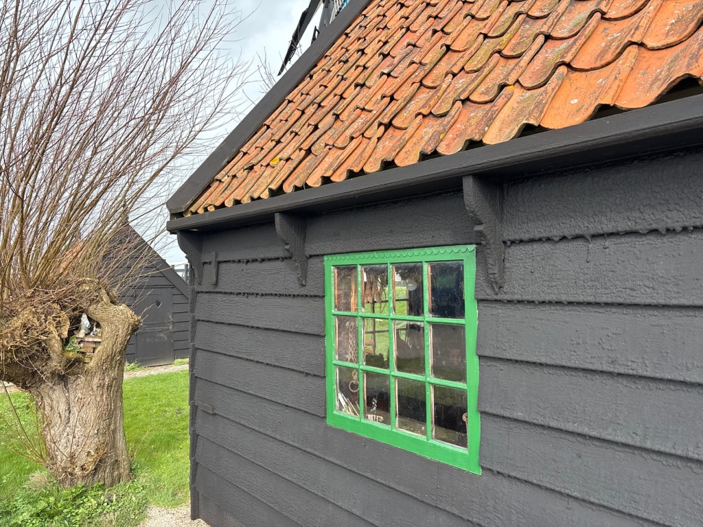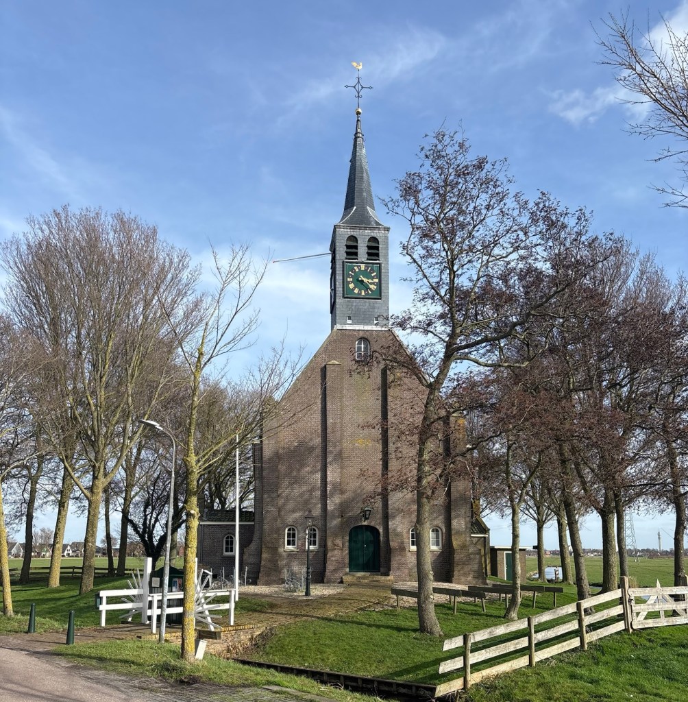 Ik ben inmiddels in Krommenie waar wij rond de eeuwisseling woonden. De Noordervaartdijk brengt mij langs het water en allerhande bedrijvigheid, van klein tot groot. Woonboten liggen in het water. Ik steek de Linoleumstraat over, een eerbetoon aan de oude fabrieksplek van het huidige FORBO. De Vermaningstraat die gaat naar de plek van de houten Doopsgezinde kerk met zand op de vloer. Bij de Kruisdijk wordt het een smal pad, goed voor de bewoners van de woonboten en de huisje landinwaarts. Dan kom ik uit bij de Taandijk, bij het Molletjesveer. Ik ga landinwaarts. Rechts van mij de polder en de beroemde molen De Woudaap. Deze molen is een regelmatig onderwerp in de boeken over de jongens van de Kameleon. Hotze de Roos, de schrijver van deze boeken, woonde (aan de Lijnbaan) en werkte in Krommenie. Plaatselijke elementen werden veelvuldig gebruikt door hem. De Taandijk gaat over in Krommeniedijk. Een lange dijk met aan weerszijden huizen in allerlei soorten en maten. Het Spuithuis (brandweer) staat er nog steeds. Een rondje Krommeniedijk wandelen was bij ons een favoriet. En dan is daar een grote trekpleister: het oude Hervormde kerkgebouw dat er al staat sinds 1755. Ooit ben ik hier binnen geweest voor een trouwdienst. Even verderop staat op de dijk de voormalige pastorie, die inmiddels een gemeentelijk monument is. Aan de Noordkant van de Noorderham ga ik op een bankje zitten. Ik doe mijn capuchon op om de wind te misleiden. Nog even wat eten en het restant van de pompoensoep naar binnen werken. Dan verder op pad langs de Noorderham. Waar de Westdijk stuit op de Busch en de Militaireweg is het einde van deze etappe 2 van het Waterliniepad. Rechts zie ik de houten brug die naar Busch en Dam gaat. Dat is voor de volgende etappe. Ik ga de Militaireweg op, dan links de Ruimtevaartlaan op, die ooit anders heette. Deze laan was eerst genoemd naar Werner von Braun, die een beroemde man was bij de Amerikaanse NASA, maar die ook veel werk had verzet voor de nazi’s met V1 en V2. Dan de Whitestraat in, Mercuryplein (waar ooit wielrenner De Kneet woonde) en dan verder over de Whitestraat, het smalle pad langs onze voormalige woning. Door een andere wijk kom ik uit bij de Leliekerk, waar wij kerkten, en waar vanochtend een grote schoonmaak is gehouden (net gemist) en verder door Krommenie, bekende en niet-bekende gebouwen en situaties. De Vredeskerk heeft het loodje gelegd. Is daar nu een AH? Het Brood des Levens ingeruild voor twee half volkoren? Langs het appartementengebouw waar de zoon van veldwachter Zwart (uit de Kameleon) woonde. Zie ik daar nu een bekende uit de winkel van groente en fruit van Johan komen? Is dat niet de vrouw van …? Maar zij is druk in gesprek en ik wandel door en loop de Zuiderhoofdstraat in. Stumpel staat nog fier overeind met het mooie beeld van de jongens Klinkhamer in hun boot Kameleon. De weg gaat over in Vlietsend en ik zie vlaggen van FORBO wapperen. Langs café de Remise wandel ik naar het station.