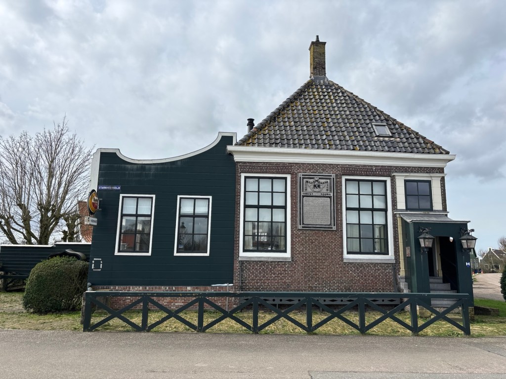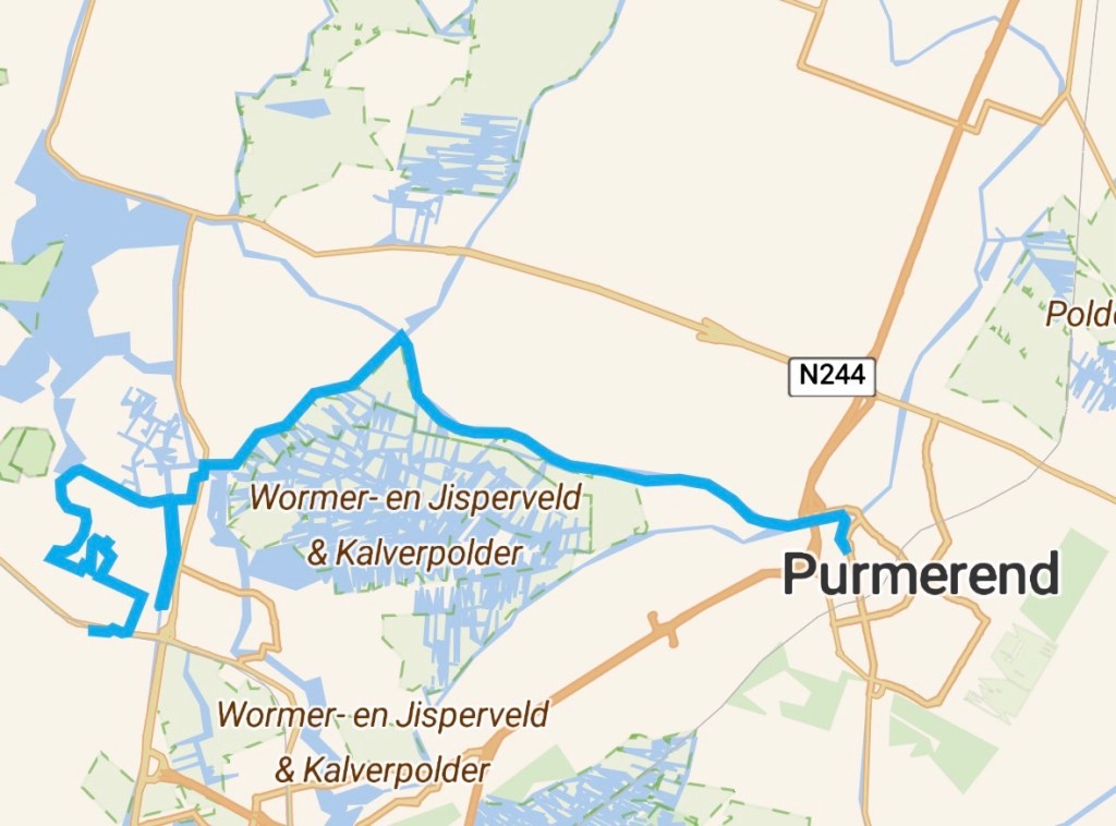 Dan verschijnen aan de horizon de contouren van Spijkerboor. Ik zie de huizen aan mijn kant van het water. Ook aan de overkant zie ik huizen en zelfs een jachthaven. Daarachter ligt het plaatselijke Fort. Ik zie twee van de ongeveer 25 inwoners, of is maar één van die twee een bewoner? Hier is een kruispunt van wateren. Het Noordhollandsch Kanaal gaat rechtdoor, vanuit het noorden komt de Beemsterringvaart en naar Oost- en West Knollendam in het zuidwesten gaat de Knollerdammervaart. Ook een viertal polders steken hier de neuzen bij elkaar. Ik steek de enige plaatselijke brug over en zie het bekende gebouw van het voormalige waterschap. Daarna is het van alles geweest (waaronder veerhuis) en nu is het permanent gesloten. Het is een mooie tijd voor iets warms, maar helaas. Het huidige gebouw stamt uit uit 1787 en heeft de eer om een rijksmonument te zijn. Wanneer ik voor het gebouw sta, met mijn rug naar de aanlegplaats van het pontje zie ik aan de rechterzijde aan de gevel een overdekte entree en een stoepje met enkele treden. Daar ga ik zitten, uit de wind, met zicht op het niet-varende pontje dat ergens anders ligt. Met enige fantasie kom ik een eind. Gelukkig heb ik warme pompoensoep meegenomen, dus er is toch nog soep. Met een paar wortels en een mandarijn er bij heb ik een typisch Spijkerboorse lunch. Na mijn uitgebreide lunch stort ik mij in de woeiwind. Ik ga de Starnmeerdijk op, langs de Knollerdammervaart. De wind heeft besloten om precies de andere kant uit te gaan. Ik volg deze dijk ongeveer 4 kilometer. Aan dijken geen gebrek vandaag. In de polder ligt een omheind terrein, bomen, gebouwen, open velden. Nu zijn er geen naturisten te bekennen. Aan boerderijen is hier minder gebrek dan op het eerste deel van mijn tocht. Ik kom langs het voetveerpont Starnmeerpolder, dat naar Oostknollendam gaat. Het is heel verleidelijk om even heen-en-weer te gaan, maar ik weet mij te beteugelen. Dan langs het begin of het einde van de Zaan. Ik ga de Amaliabrug over en kom in Westknollendam. In dit westelijke Knollendam ligt de Karnemelksepolder met daarin de voetbalvelden van CVV Blauw Wit, waar onze beide jongens voetbalden rond de eeuwwisseling. Bij het beroemde Molletjesveer wil ik de niet minder beroemde Nauernasche Vaart oversteken, maar helaas … de pont vaart niet. Dit heb ik niet van te voren bekeken. Dat betekent dat ik een flinke omleiding zal moeten maken. Eerst naar het zuiden (bijna twee kilometer) over een graspad over de dijk, vervolgens de Vaartbrug over en dan naar het noorden (bijna twee kilometer).